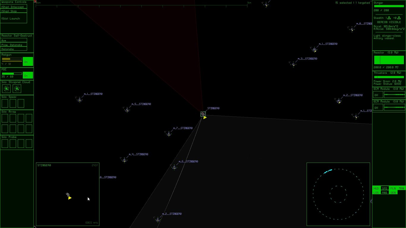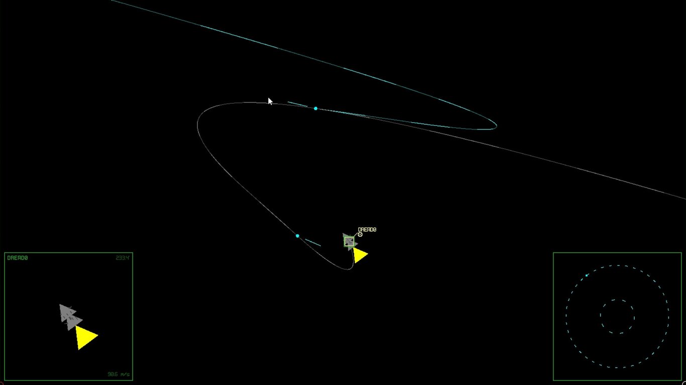 A multiplayer real-time 2D space combat simulator based on Newtonian physics. Featuring ship trajectory projection and maneuver planning, real-life missile tracking algorithms (proportional navigation), and automated turrets capable of leading target velocity and acceleration!