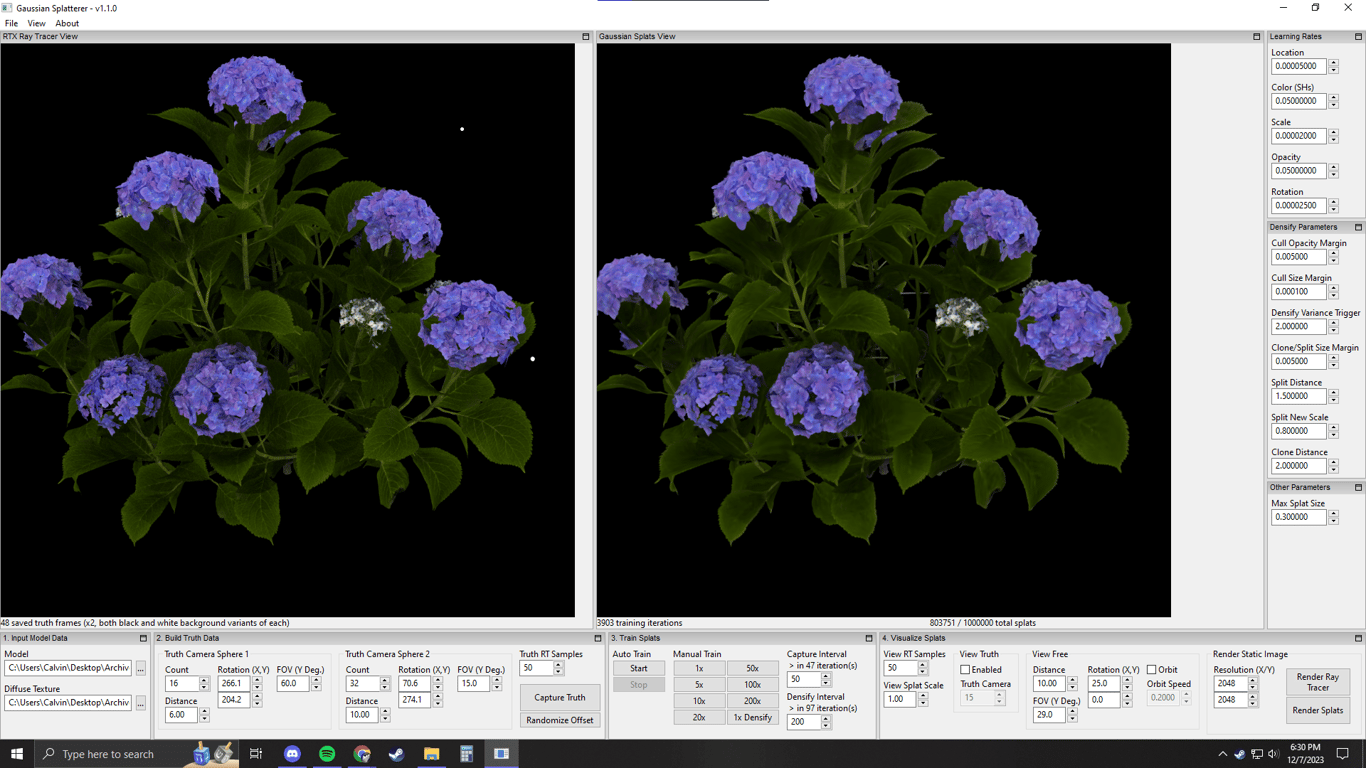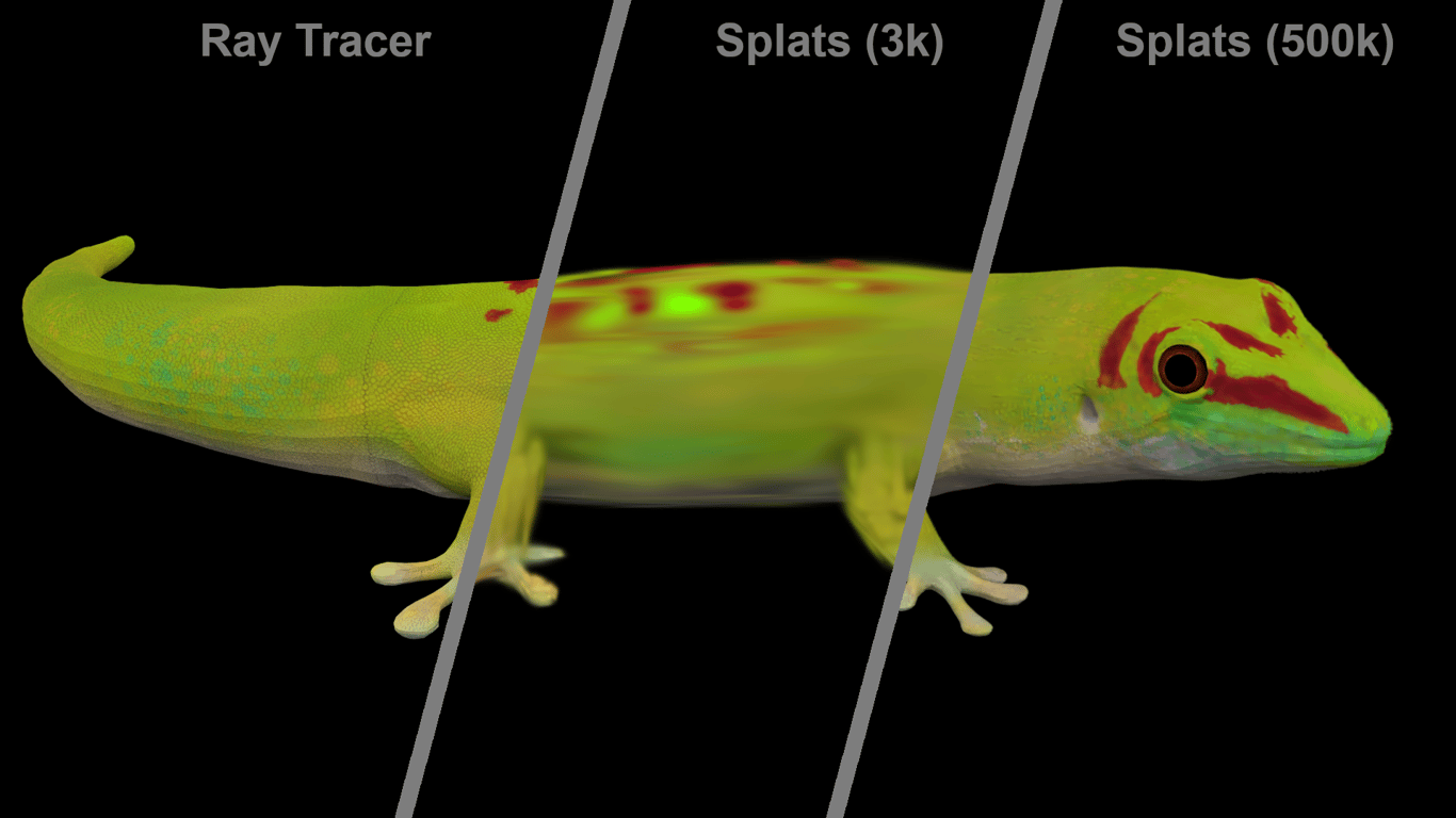 It uses my own RTX ray tracer and virtual photogrammetry to procedurally create truth images of the model, which are then fed into a series of CUDA kernels that iteratively align the splats through gradient descent.